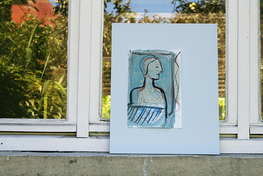 K_O-1, 2019. Watercolour, fineliner on paper, aluminium, plexiglas