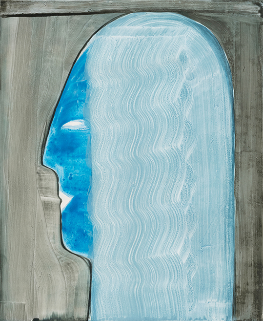 verträumter Frauenkopf hieroglyphisch Konturen zeigt. Der Künstler lotet diese überaus aufgeladene,